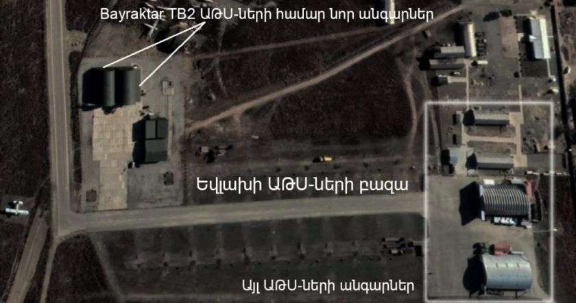 Ռազմական գործողությունների ավարտից հետո Եվլախի ԱԹՍ-ների բազայում արդեն իսկ եղած տարբեր չափերի անգարների հարևանությամբ կառուցում են ևս երկու նոր անգար, ղեկավարման կետեր և օժանդակ միջոցներ հենց Bayraktar TB2-ների մշտական տեղակայման համար։ Շուրջ 30մ երկարություն և 18մ լայնություն ունեցող անգարները հնարավորություն են տալիս յուրաքանչյուրում տեղակայել 3 միավոր ԱԹՍ։ Սա, իհարկե, չի նշանակում, որ երկու անգարում միասին միաժամանակ տեղակայվելու է 6 միավոր ԱԹՍ։
