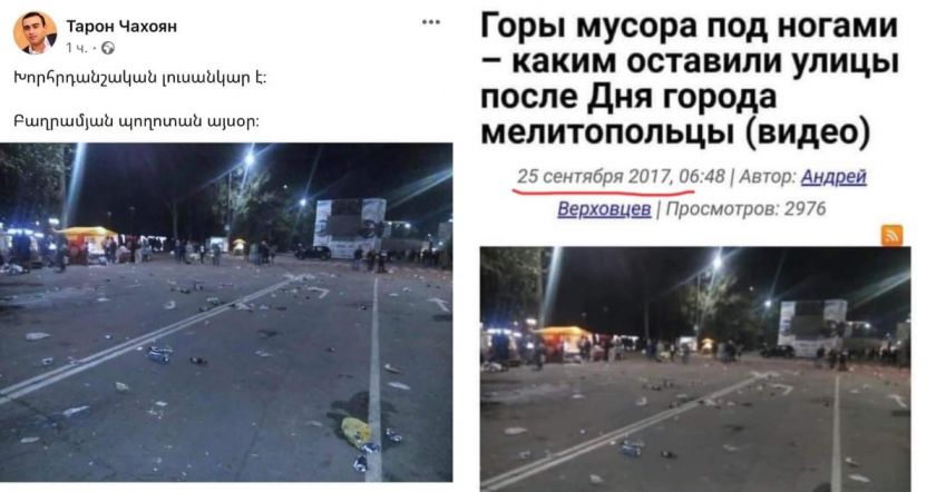 Կապիտուլյանտի հանցակից ուսապարկերը լրագրողներին ծեծելու ընդմիջումների ժամանակ սրտնեղում են ապատեղեկատվությունից: Լուսանկարում ՀՀ-ում ապատեղեկատվության դեմ պայքարող թիվ մեկ պատասխանատու պաշտոնյան կեղծ լուսանկար է տարածում, փորձելով կեղծիքի միջոցով վարկաբեկել կապիտուլյանտի քաղաքական հակառակորդներին: Այս պաշտոնյան ստախոս է և կեղծարար: Հիմա պատկերացրեք, թե ոնց են այս իշխանությունները կեղծելու ընտրությունները: