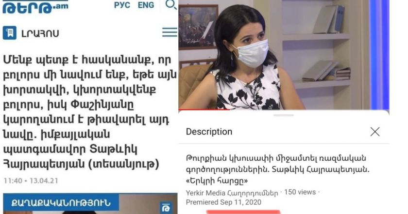 Սա Տաթևիկ Հայրապետյանն է. նախքան պատգամավոր դառնալը միայն տնեցիք գիտեին, որ Տաթևիկը դեբիլ է: Ու քանի որ երեկվանից շատերդ ջղայնացած դնում եք «հմուտ նավարարի» մասին իրա դուրս տվածը, ես էլ դնում եմ Տաթևիկի նախորդ դուրս տվածները: