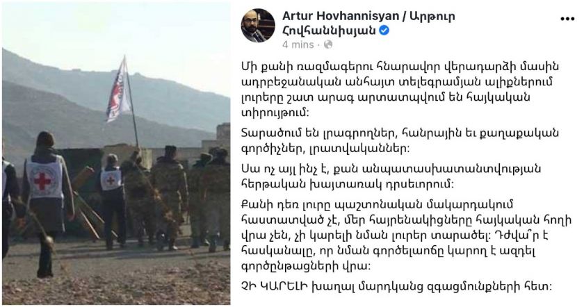 Հլը էս լրբի ծնունդին նայեք: Նախորդ անգամ, որ նիկոլ իլհամիչի համատեղության կարգով խոսնակ Մանեն պաշտոնապես սուտ ասեց, թե գերիներ են գալի ու չեկան, էս վիժվածքը մի բառ չդատապարտեց, հիմա երբ անուն-ազգանուններով կա 3 տղերքի անունը վիձիծի լի, խորուրդ ա տալիս զգացմունքների հետ չխաղալ: