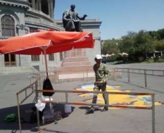 Բանը նրանումն է, որ երկու երիտասարդ (ինչպես իրենք իրենց կոչում էին` նկարիչներ) ջանասիրաբար «ապականում» էին հուշարձանի ուղիղ դիմացն ընկած տարածքը: Երբ ես չդիմանալով հարցրի վերոհիշյալ վիրտուոզ նկարիչներին, թե այս ամբողջ հրապարակում արդյոք այլ տեղ չկա՞ր, որ հենց այս հատվածը պետք է ներկեք, նրանք պատասխանեցին` «Հա, ի՞նչ է եղել որ, որտեղ ուզում ենք` այնտեղ էլ նկարում ենք, բացի դրանից` մեր թիկունքին ձեռնարկություն կա կանգնած» (որի անունը ինձ այդպես էլ հաջողվեց նրանցից իմանալ):