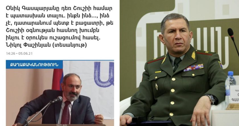Սկզբից Շուշիի թեման ուզում էին գցեին Սերյան Օհանյանի ջեբը, բայց չկարողացան, հետո Վանեցյանի վրա փորձեցին թեման բարդել, էտ էլ անհաջողությամբ պսակվեց , հիմա էլ Գասպարյան Օնիկը...