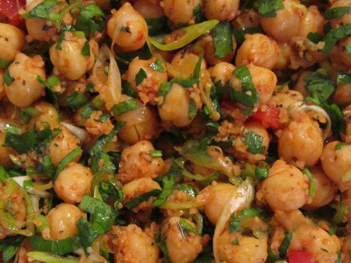 100 գ սիսեռի վրա ջուր լցնել և թողնել 10-12 ժամ (լավ կլինի ամբողջ գիշեր), ջուրը թափել, նորից ջուր լցնել և եփել: 1 ճ գդալ բլղուրի վրա 2 ճ գդալ եռացրած ջուր լցնել, որ փափկի և տռզի:))) Տռզելուց հետո 1 թեյի գդալ տոմատի մածուկ ավելացնել և չորացրած անանուխ (նանա), մաղադանոսը, կ
