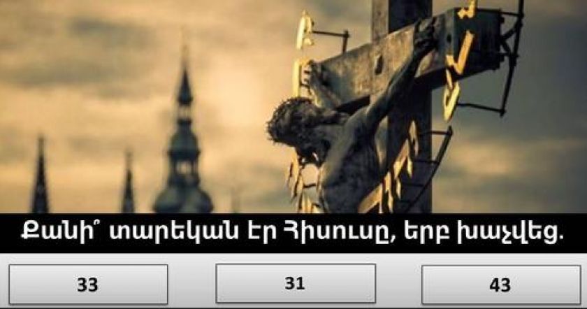 Տարածված տեսակետ կա, որ քրիստոնեությունը որպես պետական կրոն ընդունած երկրում՝ Հայաստանում, բոլորը կարդացել են Աստվածաշունչը կամ հիմնականում տեղյակ են դրանից: «Քչերը գիտեն, շատերը չգիտեն» բլոգն առաջարկում է ստուգել, թե որքանով եք տեղյակ Դուք. Նյութի աղբյուր՝ https://ashxarhishurj.blogspot.com/2016/10/blog-post_11.html Կայքում տեղ գտած մտքերն ու տեսակետները հեղինակի սեփականությունն են և կարող են չհամընկնել BlogNews.am-ի խմբագրության տեսակետների հետ: print Տպել