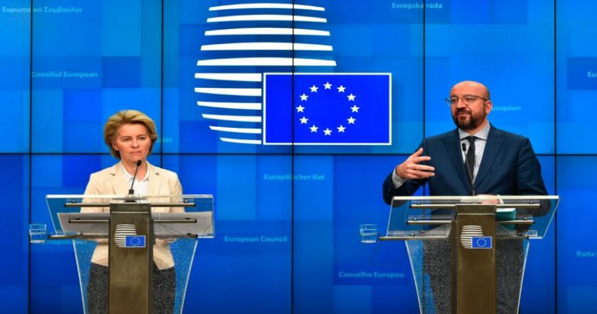 Եվրահանձնաժողովի ղեկավար Ուրսուլա ֆոն դեր Լյայենը և Եվրոպական խորհրդի ղեկավար Շառլ Միշելը դատապարտել են ՌԴ կողմից Դոնեցկի Ժողովրդական Հանրապետության (ԴԺՀ) և Լուգանսկի Ժողովրդական Հանրապետության (ԼԺՀ) անկախության ճանաչումը՝ որակելով դա որպես միջազգային իրավունքի և Ուկրաինայի տարածքային ամբողջականության խախտում։