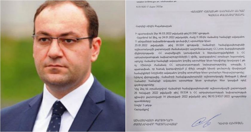 Այս անգամ իրավունքի ոչնչացման հերթը Վանաձոր համայնքապետարանի աշխատակազմի քարտուղարի պաշտոնակատարինն է: Այս համայնքային պաշտոնյան բացահայտ և կոպտորեն խախտելով օրենսդրությունը իրեն իրավունք է վերապահել կարգադրիչի դեր ստանձնել, մինչդեռ ինքն զբաղեցնում է ընդամենը սպասարկող պաշտոն: