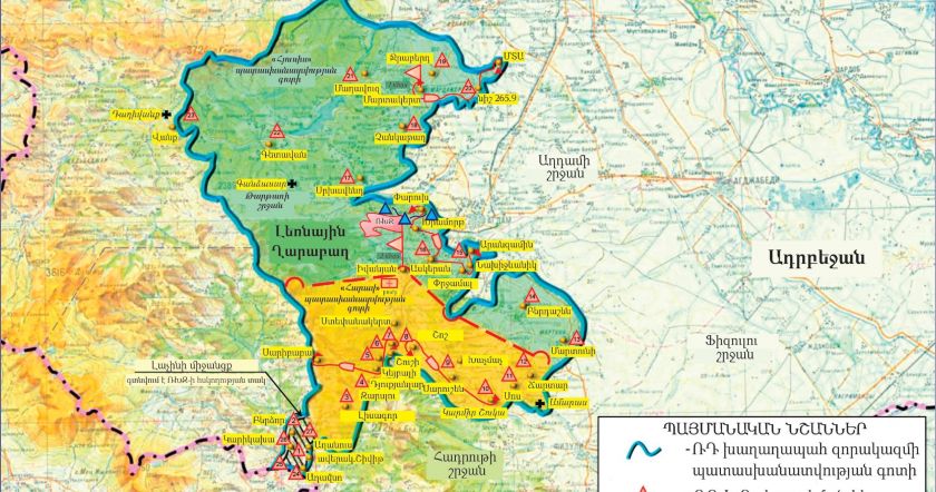 2022թ. մարտի 29-ի առավոտյան ժամը 09.00-ի իրադրությունը արտահայտող քարտեզում երևում է, որ Լեռնային Ղարաբաղում ՌԴ խաղաղապահ զորախմբի պատասխանատվության գոտում տեղադրված են ադրբեջանական հենակետեր: