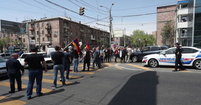 Նրանք նստեցին գետնին՝ թույլ չտալով, որ մեքենաները երթևեկեն։ Այս պահին լսվում են ՃՈ մեքենաների ազդանշաններ։