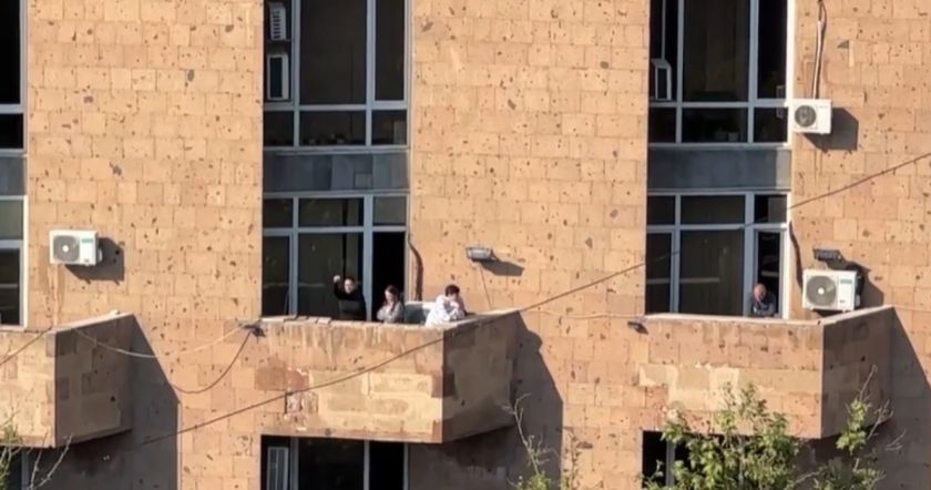 «Առանց Նիկոլ Հա-յաս-տան»վանկարկումները ողջունում են նաև կառավարության շենքում: Աշխատակիցները պատշգամբներից իրենց համաձայնությունն են հայտնում անհնազանդության երթի բազմահազար մասնակիցներին: