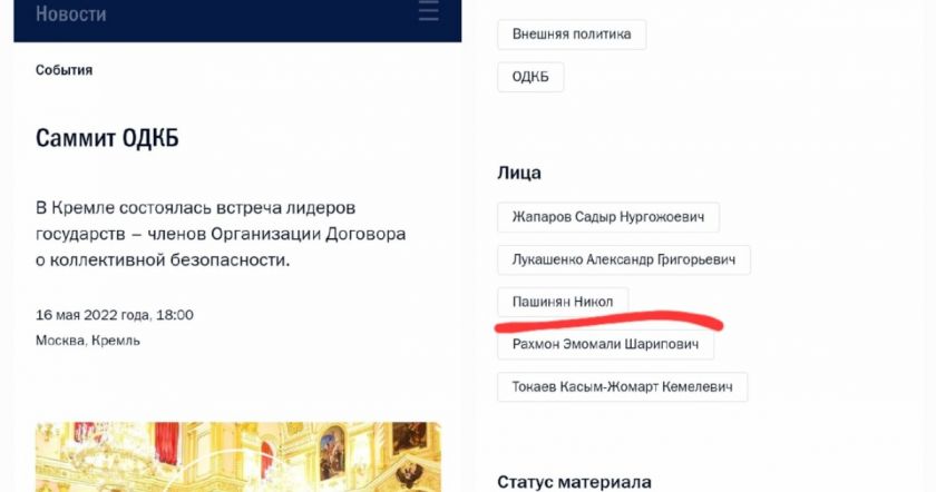 Ըստ Կրեմլի պաշտոնական կայքի Նիկոլ Անհողը հայրանուն չունի