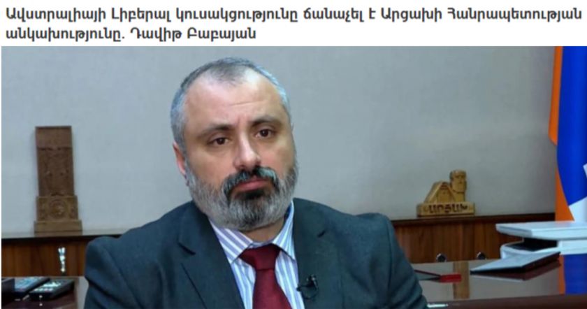 Ինչպես հայտնել է ԱՀ արտգործնախարար Դավիթ Բաբայանը, օգոստոսի 11-ին Ավստրալիայի Լիբերալ կուսակցությունը Նոր Հարավային Ուելսում կայացած համաժողովում ճանաչել է Արցախի Հանրապետության անկախությունը և Թուրքիայի կողմից իրականացված հայերի, ասորիների և հույների ցեղասպանությունները՝ դիմելով Ավստրալիայի դաշնային կառավարությանը՝ նույնպես ճանաչելու Արցախի Հանրապետության անկախությունը։
