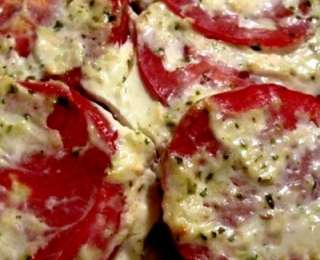 300 գ մակարոնը եփել տուփի վրա նշված ժամանակից 1-2 րոպե պակաս (մոտ 8 րոպե), եփված մակարոնը լցնել ջեռոցի ամանի մեջ, վրան շարել կլոր-կլոր կտրատած լոլիկ, սև պղպեղ ցանել, պանիր քերել, 1-2 պճեղ սխտորը կտրատել, ավելացնել զանգվածին, եթե պանիրը աղի չէ, աղ ցանել և մի փոքր ձեթ լցնել: Այս ամենը բարակ շերտով պատել մայոնեզով, բայց ես խուսափում եմ մայոնեզ շատ օգտագործելուց, ուստի թթվասերի մեջ սխտոր եմ ճզմում և մի փոքր կիտրոնի հյութ եմ ավելացնում: Եփել նախապես 200 աստիճան միացրած ջեռոցում 10- 15 րոպե: Բարի ախորժակ :)