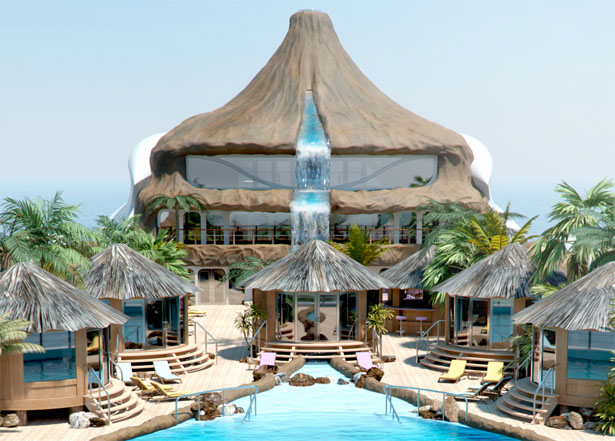 Դասական կղզու լանդշաֆտը և համապատասխան համարները տեղադրել են 90-մետրանոց Tropical Island Paradise զբոսանավի վրա: «Կղզու» ամենահետաքրքիր մասը հրաբխի տեսքով տանիքն է: Ներսում կա կինոթատրոն, գրադարան, խաղասենյակ, սպորտային դահլիճ, սպա-կենտրոն և VIP-համարներ: