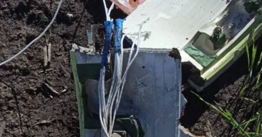 Բելգորոդի մոտ աշխատած ռուսական 48н6дм զենիթային հրթիռի մնացորդները՝ իզոլենտած լարերով։ Իզոլենտա - էտը սիլա։