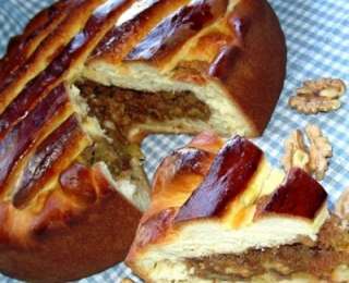 250 գ ընկույզը բլենդերով ոչ շատ մանր աղալ կամ դանակով մանրացնել, ավելացնել 5-6 ճ. գդալ շաքարավազ և կես թ. գդալ դարչին (ես չամիչ էլ եմ ավելացրել): 2 ձվի սպիտակուցին մի պտղունց աղ ավելացնել և հարել այնքան, որ ամանը շրջելիս ձուն չծորա: Զգուշությամբ սպիտակուցը խառնել ընկույզով զանգվածին: