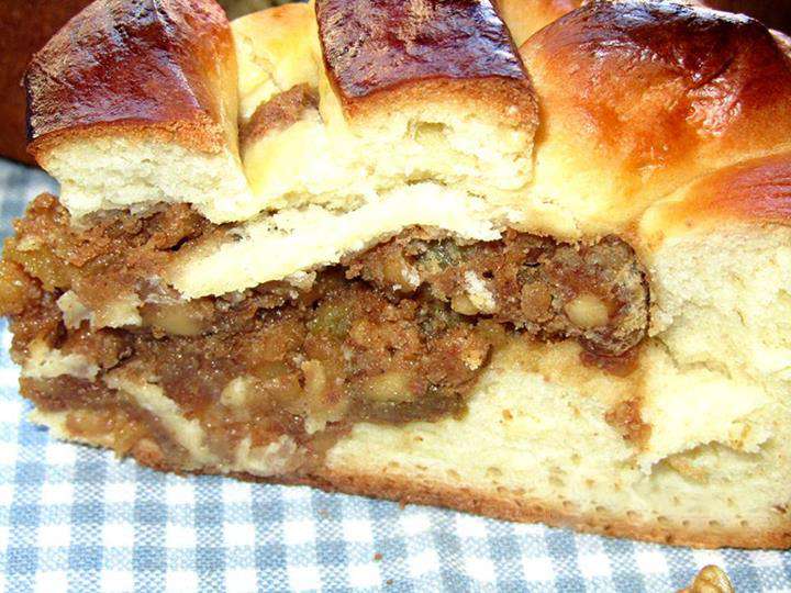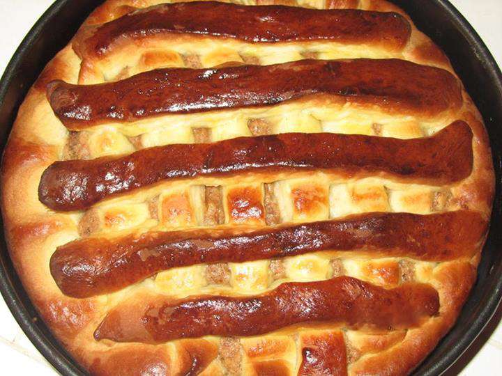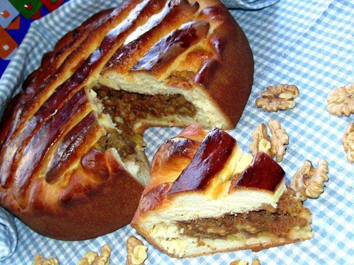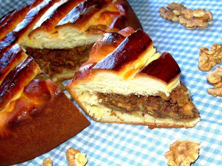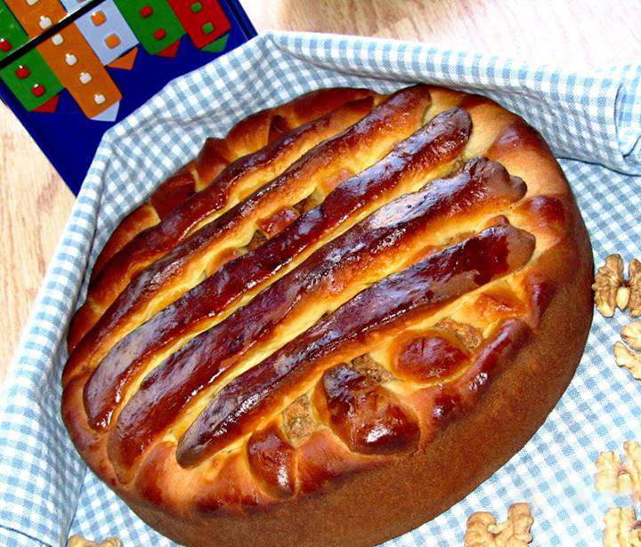 Հասունացած խմորը բաժանել 2 մասի: Մի մասը գրտնակել և տեղափոխել ջեռոցի տապակի մեջ (տապակը նախապես ծածկել յուղաթղթով), խմորին տալ տապակի ձևը, մեջը լցնել միջուկը, տարածել: Խմորի մյուս մասը գրտնակել, ժապավեններ կտրել և ձևավորել մեր տորթ - բուլկին: Վրան հարած ձու քսել: Թխել նախապես 180 (350F) աստիճան միացրած ջեռոցում 30-40 րոպե կամ մինչև կարմրելը: Համեղ սուրճ կամ թեյ պատրաստել և վայելել: Բարի ախորժակ !!!!!