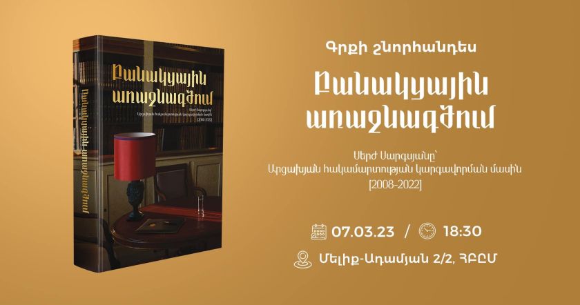 Ս.թ. մարտի 7-ին, ժամը 18:30-ին, ՀԲԸՄ դահլիճում (Մելիք-Ադամյան 2/2 ) տեղի կունենա ԼՂ հակամարտության կարգավորման բանակցային գործընթացի վերաբերյալ ՀՀ երրորդ նախագահ Սերժ Սարգսյանի մոտեցումները մեկ ժողովածուի շրջանակներում ներկայացնող՝ «Բանակցային առաջնագծում» գրքի շնորհանդեսը: