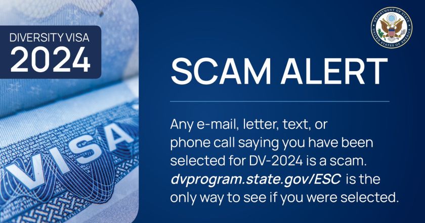 DV-2024-ում կամ գրին քարտի խաղարկությունում շահելու վերաբերյալ Էլ․ փոստով, նամակով, տեքստային հաղորդագրությամբ կամ հեռախոսազանգով ստացված ցանկացած ծանուցում կեղծիք է։ Շահման մասին տեղեկություն ստանալու միակ ճանապարհը կարգավիճակի ստուգումն է dvprogram/state.gov/ESC էջում։
