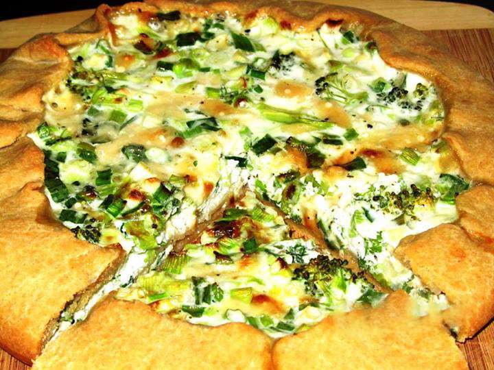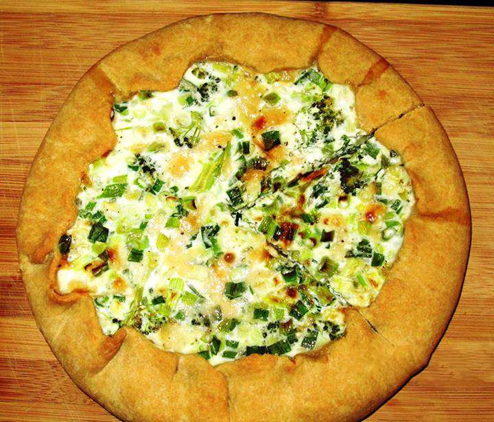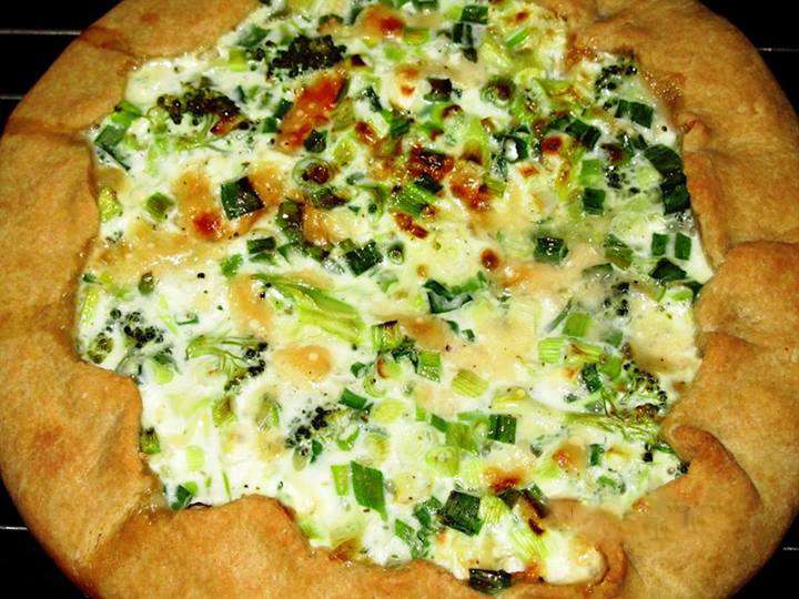 270 գ ալյուրն ու 1/4 թ. գդալ աղը մաղել, 1 ձուն 60 մլ զեյթունի ձեթի և 60 մլ գոլ ջրի հետ հարել, լցնել ալյուրի վրա, խմոր հունցել: Թողնել հանգստանա: 300 գ կանաչ սոխը մանր կտրատել, ավելացնել 2 ձու, 50 գ քերած պանիր, 100 մլ կաթ, աղ, սև պղպեղ: Խմորը բարակ գրտնակել, ջեռոցի կլոր ամանին կարագ քսել, խմորը տեղավորել մեջը, կենտրոնում տարածել միջուկը, խմորի ծայրերով փակել կողքերը, կարկանդակը ծաղկի տեսք է ստանում, միջուկի վրա ավելացնել ևս 50 գ քերած պանիր, թխել նախապես 180 (350F) աստիճան միացրած ջեռոցում մոտ 45 րոպե: Համեղ է և՛ տաք, և՛ սառը վիճակում: Բարի ախորժակ!!!
