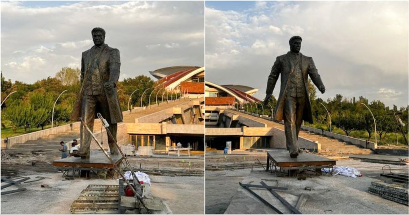 Հայաստանի ազգային հերոս Կարեն Դեմիրճյանի բրոնզե արձանը տեղադրվում է մարզահամերգային համալիրի դիմաց։