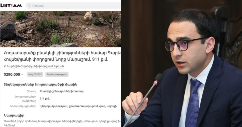 Նույն փողոցում 1250 քմ տարածքով հողամասը (Արմեն Ավինյանին պատկանող հողամասից 250 քմ ավելի), ըստ List.am կայքի, արժե 500 000 դոլար։