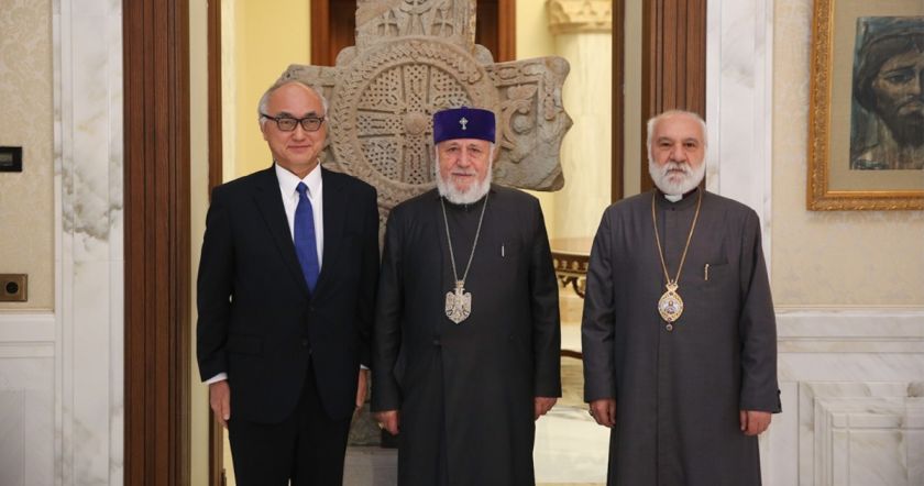 Ճապոնիայի դեսպանը նաև իր ցավակցությունն ու զորակցությունը հայտնեց Նորին Սրբությանը արցախյան պատերազմի զոհերի ու տեղահանված արցախցիների առնչությամբ։