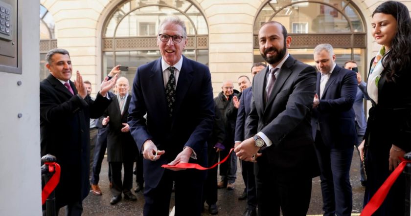 ՀՀ ԱԳ նախարար Արարատ Միրզոյանի` Միացյալ Թագավորություն պաշտոնական այցի շրջանակներում նոյեմբերի 13-ին տեղի է ունեցել Միացյալ Թագավորությունում Հայաստանի դեսպանության նոր շենքի պաշտոնական բացման արարողությունը, որին ՄԹ կառավարության անունից մասնակցել է գործարարության և առևտրի պետնախարար Թիմըթի Մինտոն։