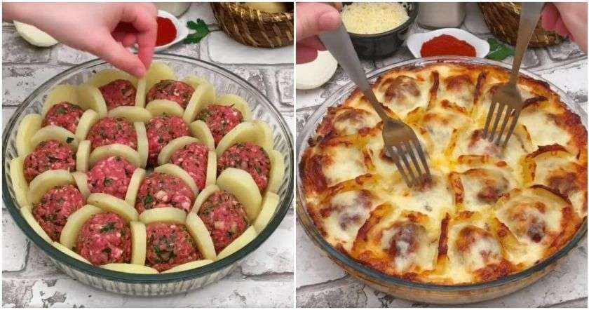 16. Հետո վերցնում ենք մնացած կարտոֆիլի շերտերը և կոլոլակները դրանցով իրարից բաժանում։