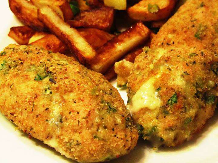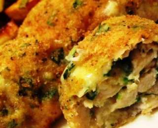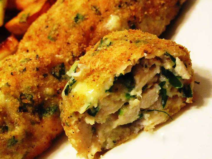 Մոտ 700 գ հավի կրծքամիսը դանակով մանր կտրատել: Մի քանի ճյուղ մաղադանոսը, համեմը մանր կտրատել (կարելի է նանա էլ ավելացնել): 100 գ լավ հալչող պանիրը քերել: 50 գ սառը կարագը մանր քառակուսիների վերածել: Իրար միացնել միսը, կանաչին, կարագը, պանիրը, 2 ոչ խոշոր ձու և 3 ճ. գդալ պաքսիմատ: Աղ, սև պղպեղ անել և լավ խառնել: Պատրաստել տափակ կոտլետներ, թավալել պաքսիմատի մեջ: Դասավորել ջեռոցի տապակի մեջ (նախապես յուղաթղթով ծածկել տապակը): Կարելի է տապակը տեղափոխել սառնարան և մի քանի ժամ թողնել այնտեղ, ճաշից առաջ տեղափոխել նախապես 200 (400 F) աստիճան միացրած ջեռոց մոտ 15 րոպեով: Կոտլետները արագ են պատրաստվում. երկար չթողնեք ջեռոցում, որ հյութեղ մնան: Բարի ախորժակ!!!!! Հարգանքներով ՝ Նինա Մինասյան