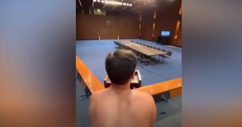 Տեսանյութում երկու անհայտ տղամարդիկ սեռական ակտ են կատարում մի տարածքում, որտեղ, ենթադրաբար, անցկացվում են Սենատի դատական հանձնաժողովի լսումները: