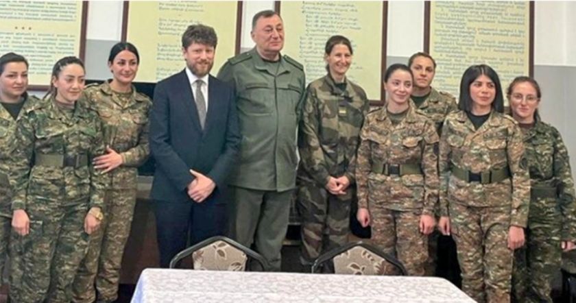 Կանանց իրավունքների պաշտպանության միջազգային օրվա առթիվ Հայաստանում Ֆրանսիայի դեսպան Օլիվիե Դըկոտինյին մտքեր է փոխանակել Հայոց բանակի կանանց գումարտակի հետ։