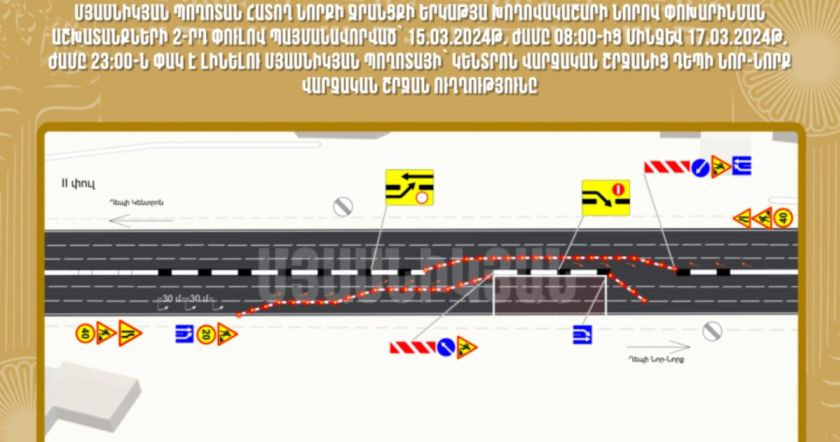 Մյասնիկյան պողոտան հատող Նորքի ջրանցքի երկաթյա խողովակաշարը նորով փոխարինելու 2-րդ փուլով պայմանավորված, ս.թ. մարտի 15-ին՝ ժամը՝ 08:00-ից մինչև մարտի 17-ը՝ ժամը 23:00-ն Մյասնիկյան պողոտայի՝ Կենտրոն վարչական շրջանից դեպի Նոր Նորք վարչական շրջան ուղղության երթևեկելի մեկ գոտին փակ է լինելու: Երթևեկությունն իրականացվելու է հանդիպակաց ուղղության մեկ երթևեկելի գոտու հաշվին: