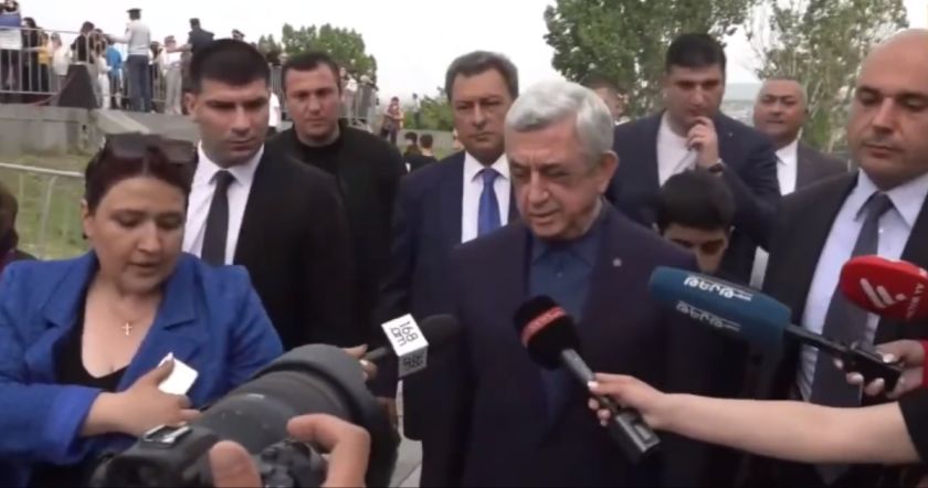 ՀՀ երրորդ նախագահ, ՀՀԿ նախագահ Սերժ Սարգսյանն այսօր Ծիծեռնակաբերդի հուշահամալիրում Ցեղասպանության զոհերի հիշատակին հարգանքի տուրք մատուցելուց հետո պատասխանել է լրատվամիջոցների ներկայացուցիչների հարցերին: