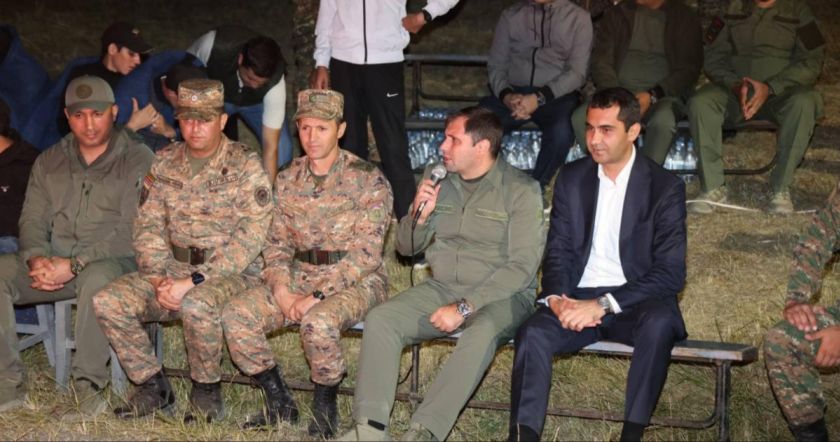 ՀՀ պաշտպանության նախարար Սուրեն Պապիկյանը N բանակային զորամիավորում կատարած աշխատանքային այցի ավարտին խարույկի շուրջ հանդիպում է ունեցել ճամբարականների և ՊՆ Վազգեն Սարգսյանի անվան ռազմական ակադեմիայի նոր ընդունված կուրսանտների հետ: