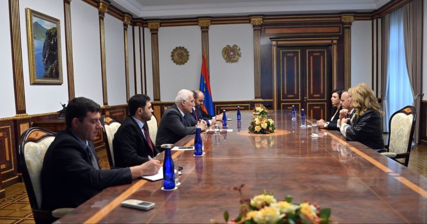 Հանդիպման ընթացքում նախագահը հյուրերին է ներկայացրել Հայաստանի ներկայիս անվտանգային մարտահրավերները, հայ-ադրբեջանական բանակցային գործընթացում առկա ընդհանուր իրավիճակը: Նախագահը շեշտել է, որ Հայաստանը բաց է բոլոր գործընկեր երկրների հետ հարաբերություններում և ունի հստակ դիրքորոշում տարածաշրջանում կայուն և հարատև խաղաղության հաստատման վերաբերյալ: