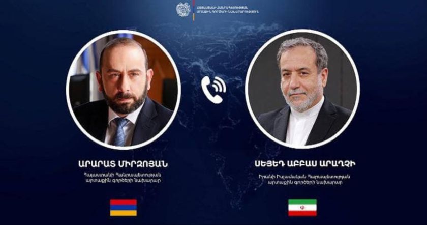Հայաստանի Հանրապետության արտաքին գործերի նախարար Արարատ Միրզոյանը հեռախոսազրույց է ունեցել Իրանի Իսլամական Հանրապետության արտաքին գործերի նախարար Սեյեդ Աբբաս Արաղչիի հետ։
