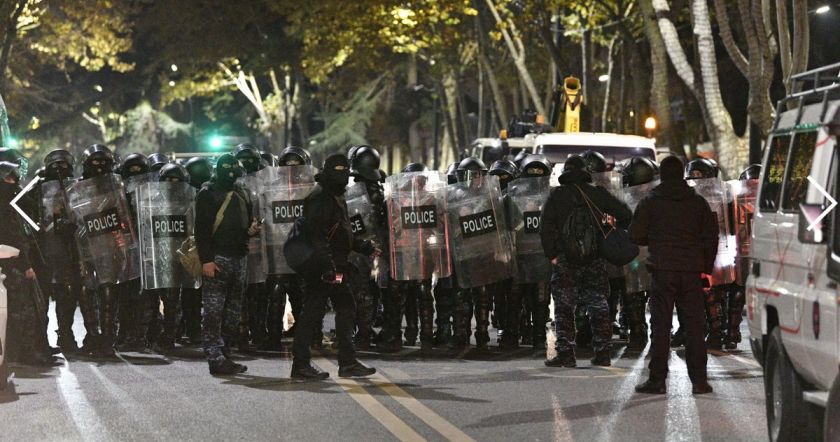 Թբիլիսիի կենտրոնում բողոքի ցույցը ցրելու ժամանակ բերման են ենթարկվել խորհրդարանական ընտրությունների արդյունքների դեմ բողոքող մի քանի ցուցարարներ։
