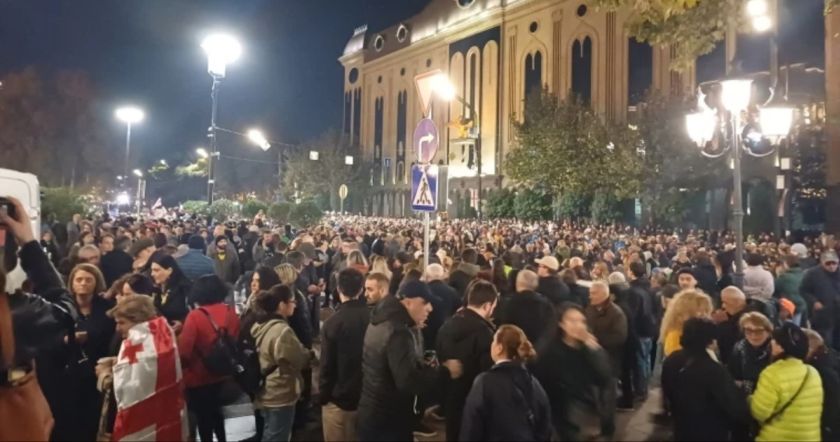 Թբիլիսիի Ռուսթավելի պողոտայում՝ Վրաստանի խորհրդարանի շենքի մոտ, բողոքի ցույց է անցկացվում, հայտնում է Վրաստանի Առաջին ալիքը։