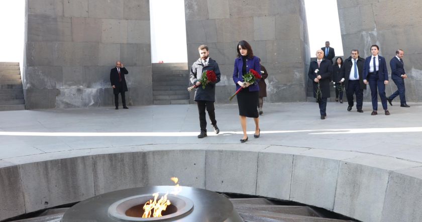 Նախարար Բոճորիշվիլին ծաղկեպսակ է զետեղել հուշահամալիրի մոտ և հարգանքի տուրք մատուցել ցեղասպանության զոհերի հիշատակին: