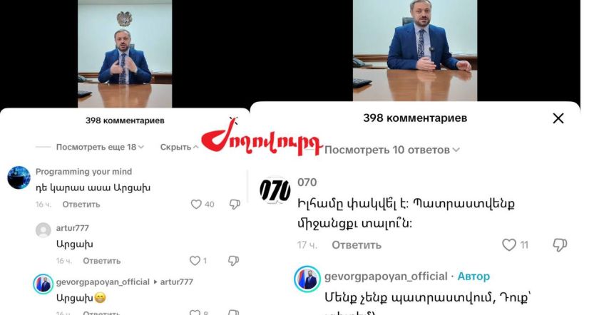 ArmLur.am-ը նկատել է, որ ՀՀ Էկոնոմիկայի նախարար Գևորգ Պապոյանը Tik Tok-ի իր էջում շատ ակտիվ է, հաճախ է տեսանյութեր հրապարակում և պատասխանում հետևորդների մեկնաբանություններին։ Օրերս հրապարակած տեսանյութում Պապոյանը անդրադարձել էր ՀՀ պետական պարտքին, նշելով, որ այն 12 միլիարդ դոլար չէ, այլ՝ 5 միլիարդ 962 միլիոն դոլար։