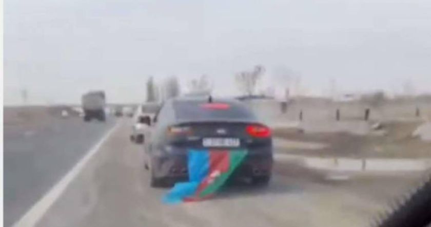 Համացանցում այսօր կայծակնային արագությամբ տարածվեց տեսանյութ, որտեղ երևում է, որ մայրուղով ընթացող մի մեքենայի բեռնախցիկից ադրբեջանական դրոշ է կախված։