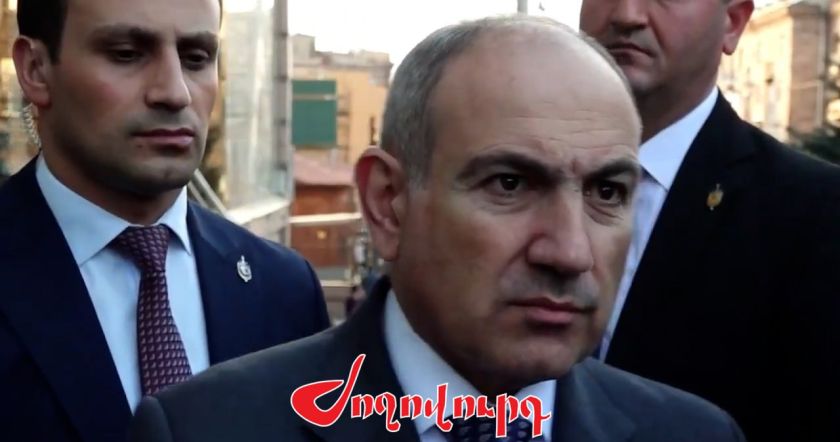 Նիկոլ Փաշինյանը ՔՊ գրասենյակի առաջ պատասխանում է լրագրողների հարցերին։
