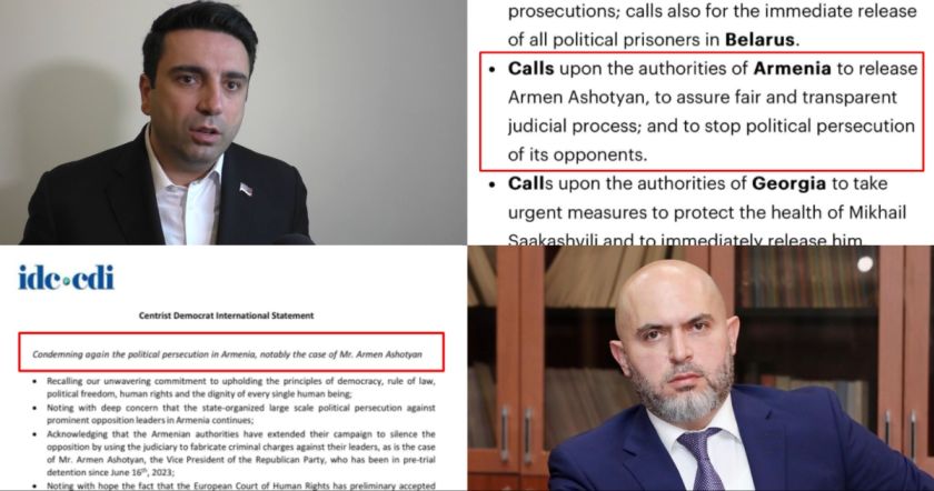 2. Կենտրոնամետ դեմոկրատների ինտերնացիոնալը (IDC-CDI) 2024 թվականի ապրիլի 9-ին առանձին բանաձեւով է անդրադարձել Հայաստանում քաղաքական հետապնդումներին՝ ընգծելով հենց Արմեն Աշոտյանի դեպքը (կցվում է):