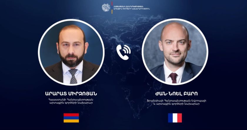 Հայաստանի Հանրապետության արտաքին գործերի նախարար Արարատ Միրզոյանը հեռախոսազրույց է ունեցել Ֆրանսիայի Հանրապետության Եվրոպայի և արտաքին գործերի նախարար Ժան-Նոել Բարոյի հետ։