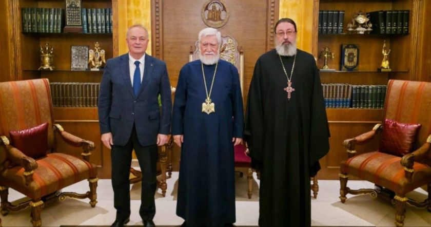 Ն.Ս.Օ.Տ.Տ. Արամ Ա. Վեհափառ Հայրապետն այսօր հանդիպել է Լիբանանուն Ռուսաստանի դեսպան Ալեքսանդր Ռուտաքովի եւ Սիրիայում ռուսական համայնքի առաջնորդ Հայր Ֆիլիպի հետ։