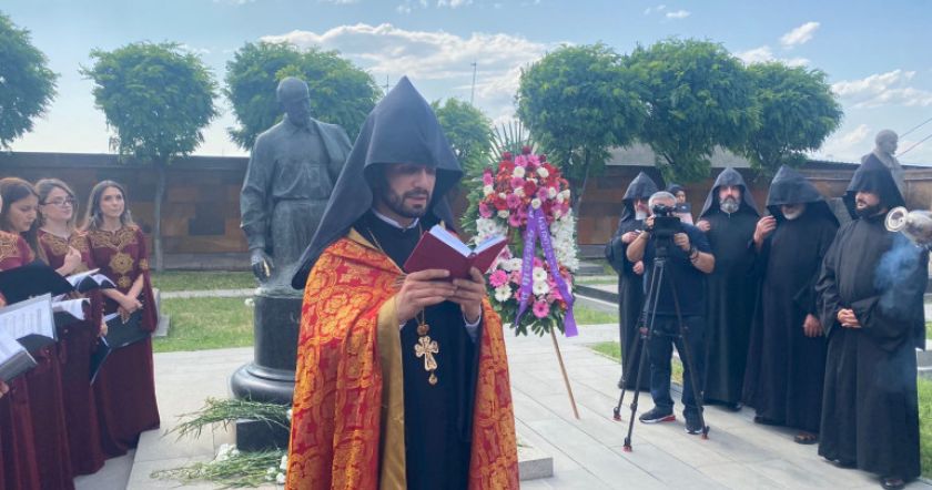 Այնուհետև եկեղեցականները մեկնեցին «Եռաբլուր» զինվորական պանթեոն`իրենց հարգանքի տուրքը մատուցելու հանուն հայրենիքի իրենց կյանքն ընծայաբերած քաջորդիների հիշատակին և աղոթելու նրանց հոգիների հանգստության ու խաղաղության համար։