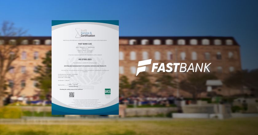 Ֆասթ Բանկին Audit Service & Certification միջազգային ընկերության կողմից շնորհվել է ISO 37301:2021 ստանդարտի համապատասխանության հավաստագիր։ Վկայագիրը փաստում է Ֆասթ Բանկի համապատասխանության կառավարման համակարգի (Compliance Management System), ինչպես նաև դրա պահպանման ու արդյունավետ աշխատանքի առկայությունը։