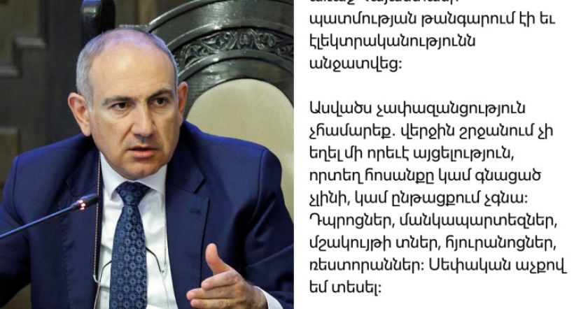 «Հարգելի գործընկերներ, քիչ առաջ Հայաստանի պատմության թանգարում էի եւ էլեկտրականությունն անջատվեց։