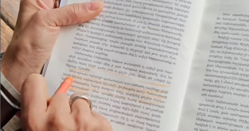 Ֆեյսբուքյան ռիլում երևում է, թե որ տողերն է Աննան նարնջագույնով ընդգծել: «…Ահա այսպես եկեղեցի- վաճառական դաս շահամոլ դաշինքը ցեցի նման կերավ արքայական ծիրանին, փոշիացրեց գահը, ժանտախտի նման ամայացրեց հայոց ծաղկուն հողը, դարձրեց քոչվոր հորդաների արոտավայր…»: Ահա հենց այս տողերն է, որ Աննան ընգծել էր գրքում՝ ի ցույց դնելով իր լսարանին: