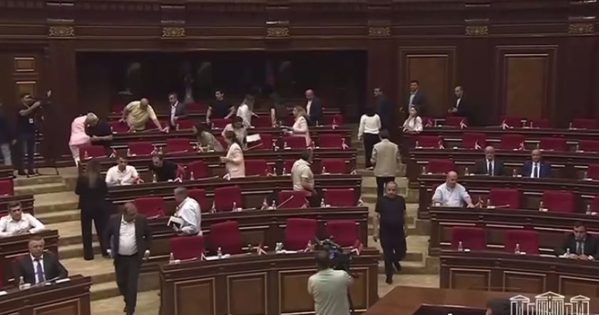 «Հայաստան» խմբակցության ղեկավար Սեյրան Օհանյանի անձեռնմխելիությունից զրկելու` Դատախազի ներկայացրած միջնորդագիրը քննարկելու հարցի ժամանակ ԱԺ ընդդիմադիր «Հայաստան» և «Պատիվ ունեմ» խմբակցությունները լքեցին նիստերի դահլիճը: